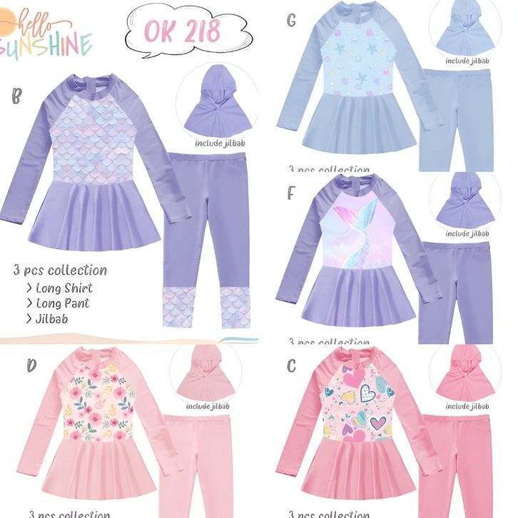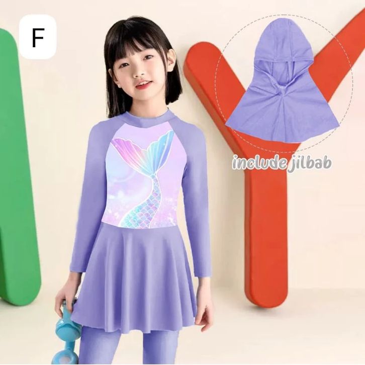 BAJU RENANG ANAK MUSLIM / BAJU RENANG ANAK HIJAB / BAJU RENANG ANAK KARAKTER / BAJU RENANG ANAK MUSLIM MERMAID ANTI UV