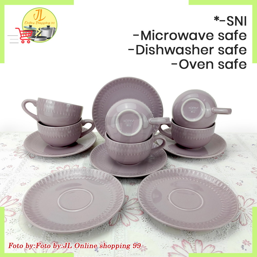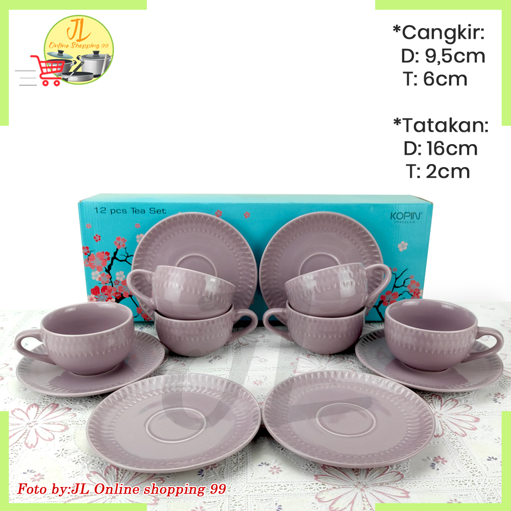 KOPIN cangkir set 6 pasang motif diamond Ungu KPC-03 / coffee tea set cup and saucer