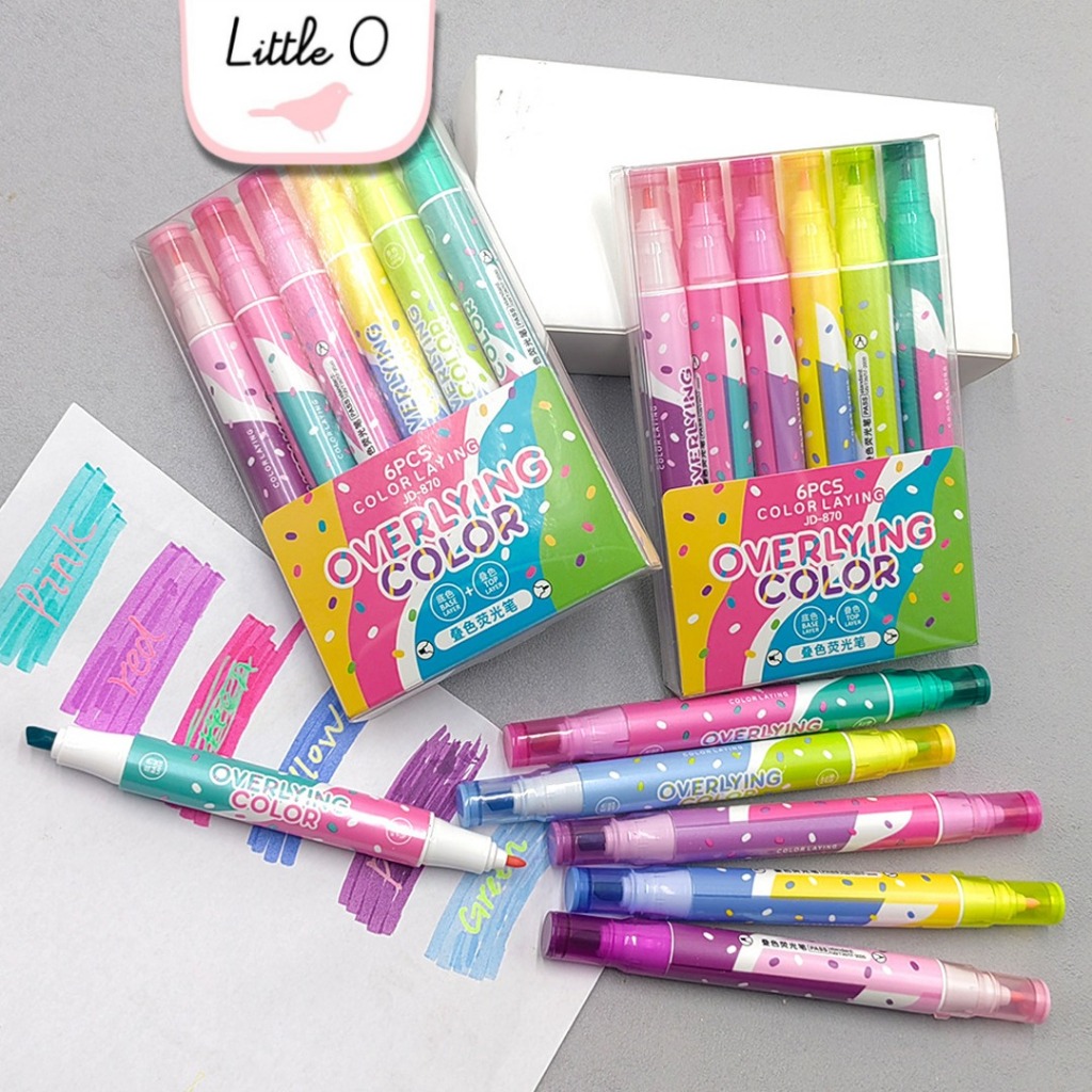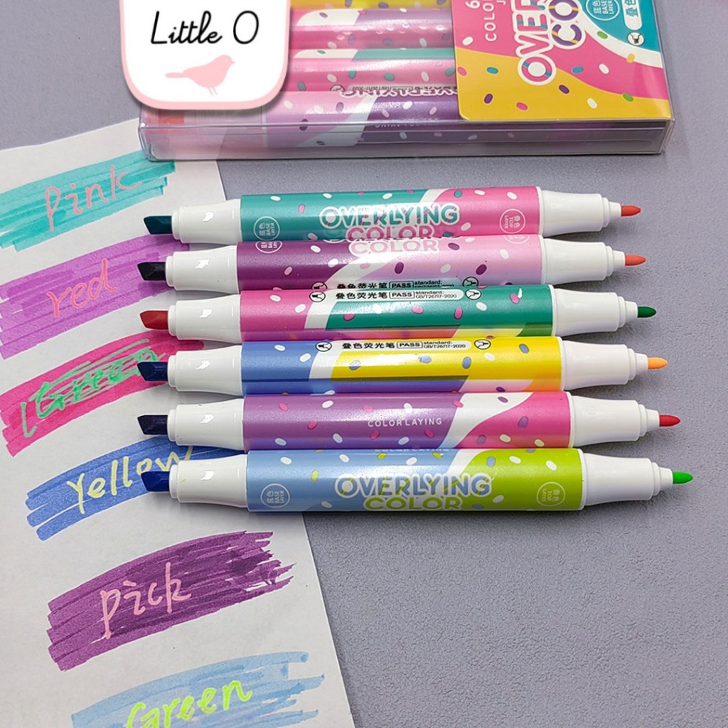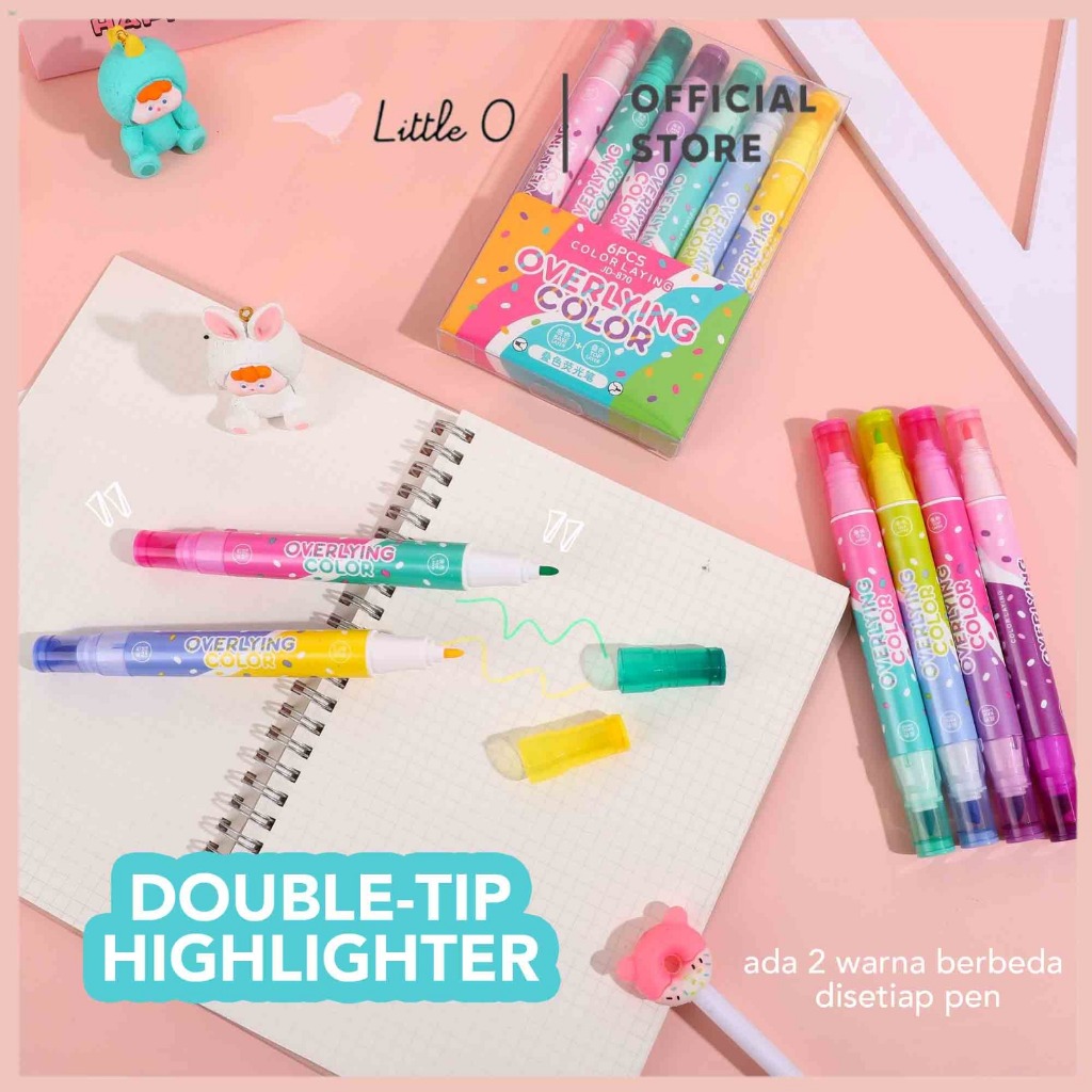 WARNA BISA DITIMPA 1 Set Double Highlighter Isi 6pcs Stabillo 2 Mata Penanda Teks Spidol Pen Marker 2 Sisi