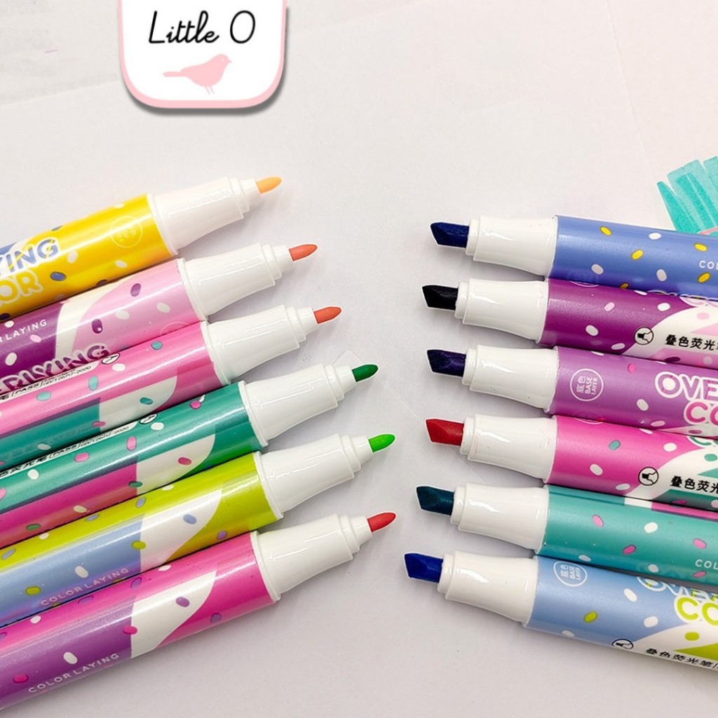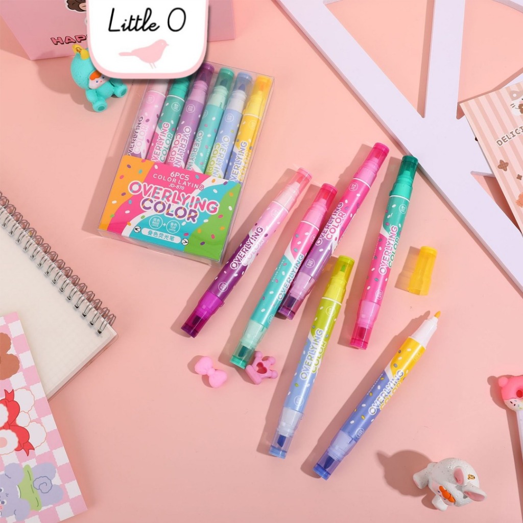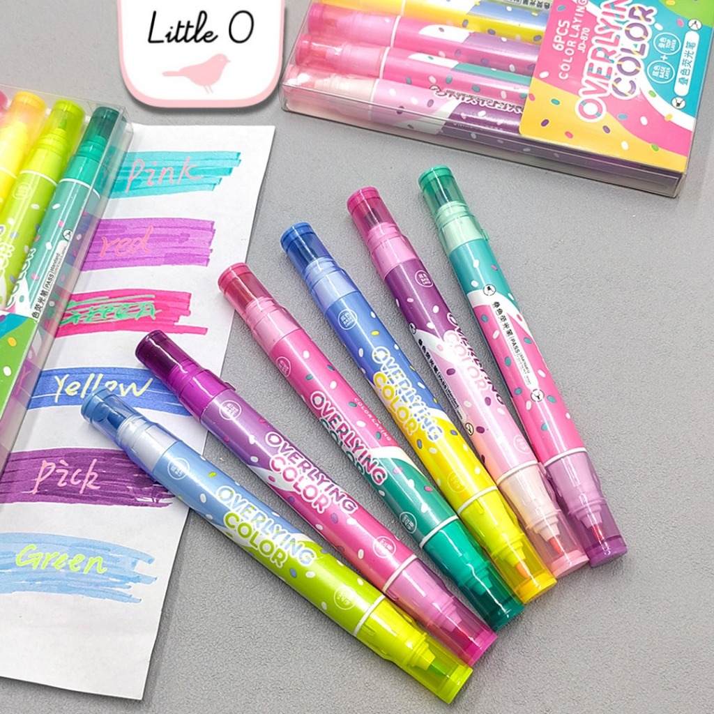 WARNA BISA DITIMPA 1 Set Double Highlighter Isi 6pcs Stabillo 2 Mata Penanda Teks Spidol Pen Marker 2 Sisi
