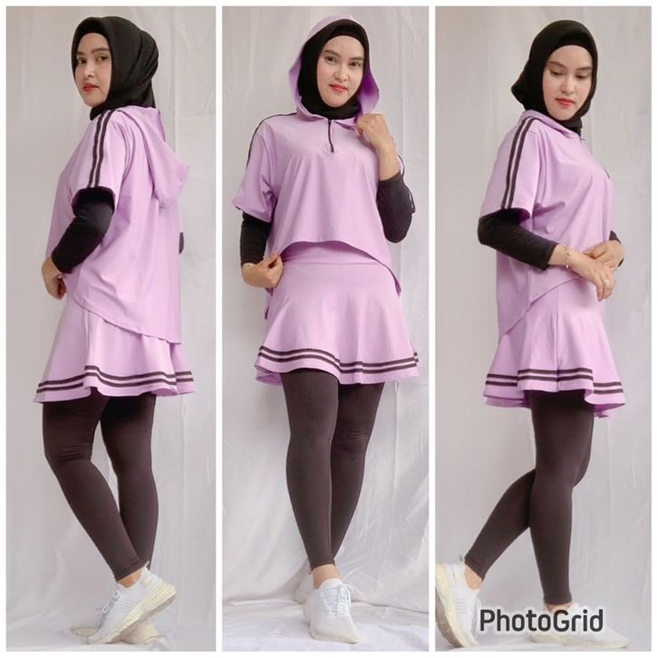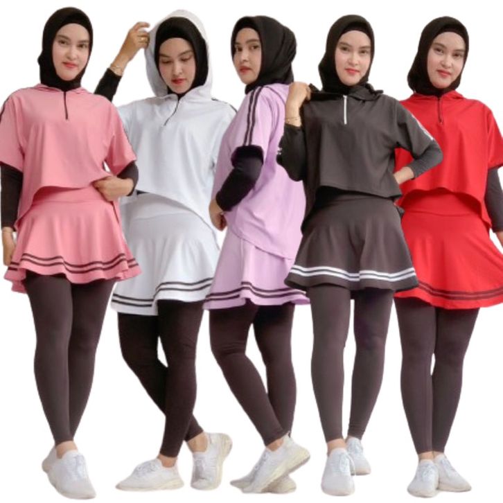 Baju Olahraga Wanita Muslim Setelan Crop Candy Resleting Legging Rok List Baju Gym Senam Jogging Fitness Simple Terbaru