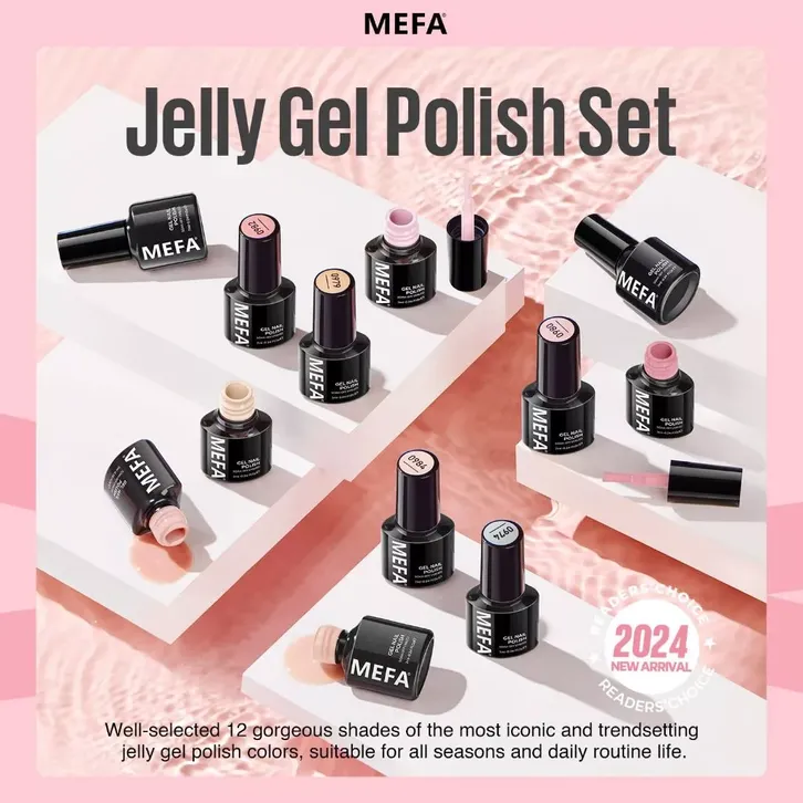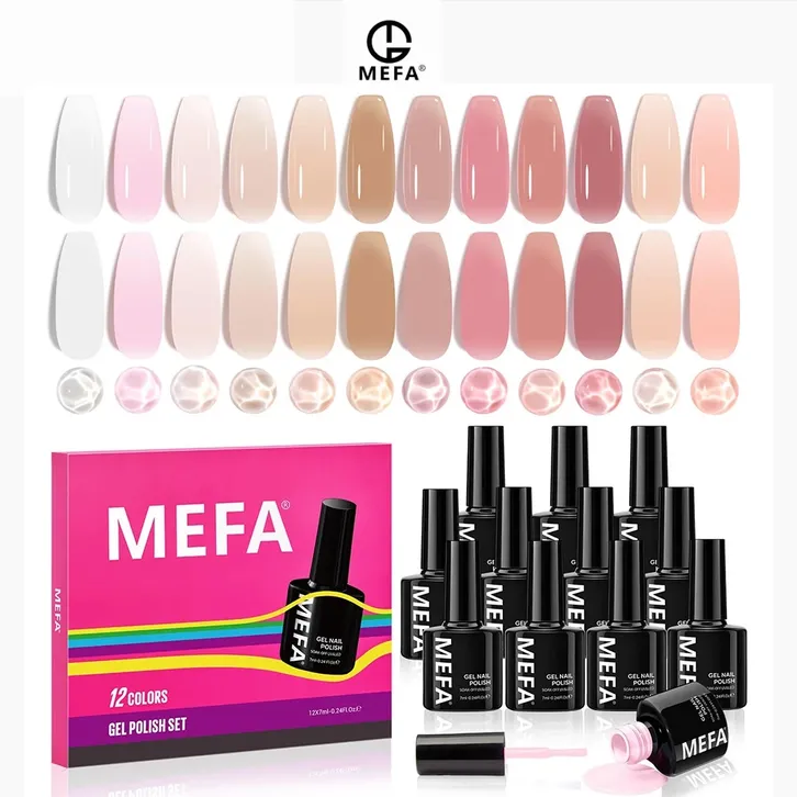 MEFA Jelly Gel Nail Polish Set, 12 Colors Jelly Nude Pink Gel Polish Milky White Sheer Pink Nail Polish Gel Neutral Tran
