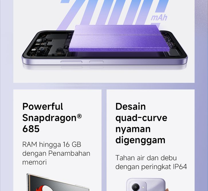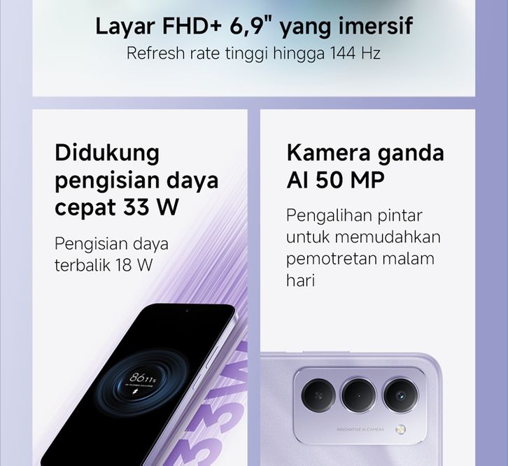 Xiaomi Redmi 15 (8GB/128GB) (8GB/256GB) Baterai besar 7000mAh dengan pengisian daya 33W | Ekspansi RAM hingga 16GB |