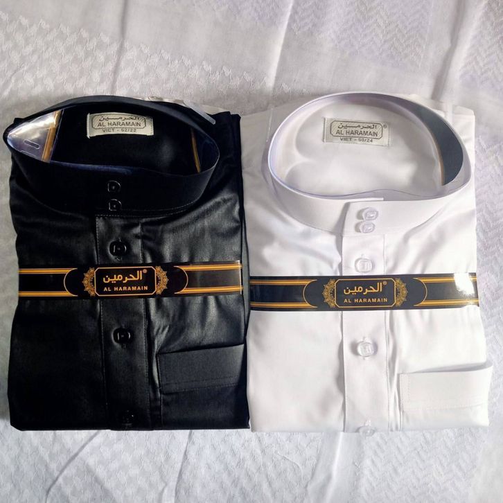 JUBAH GAMIS AL HARAMAIN VIET POLOS BAHAN POLYESTER PUTIH HITAM WARNA HIGHQUALITY (PREMIUM) Jubah Gamis Al Haramain Viet