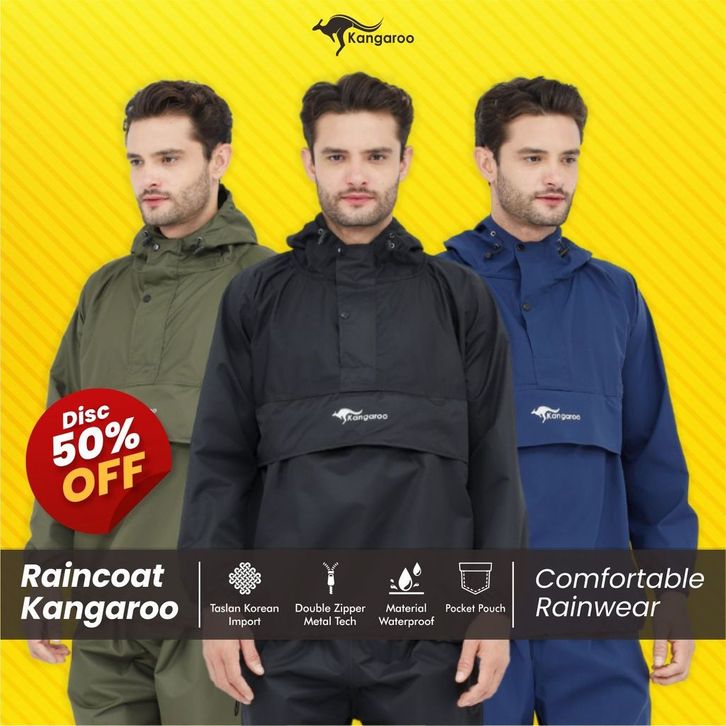 KANGAROO RAINCOAT Jas Hujan Kangguru Anti Bocor Jas Hujan Tebal Saku Kangguru Pria Wanita Dewasa Anti Air Bahan Taslan