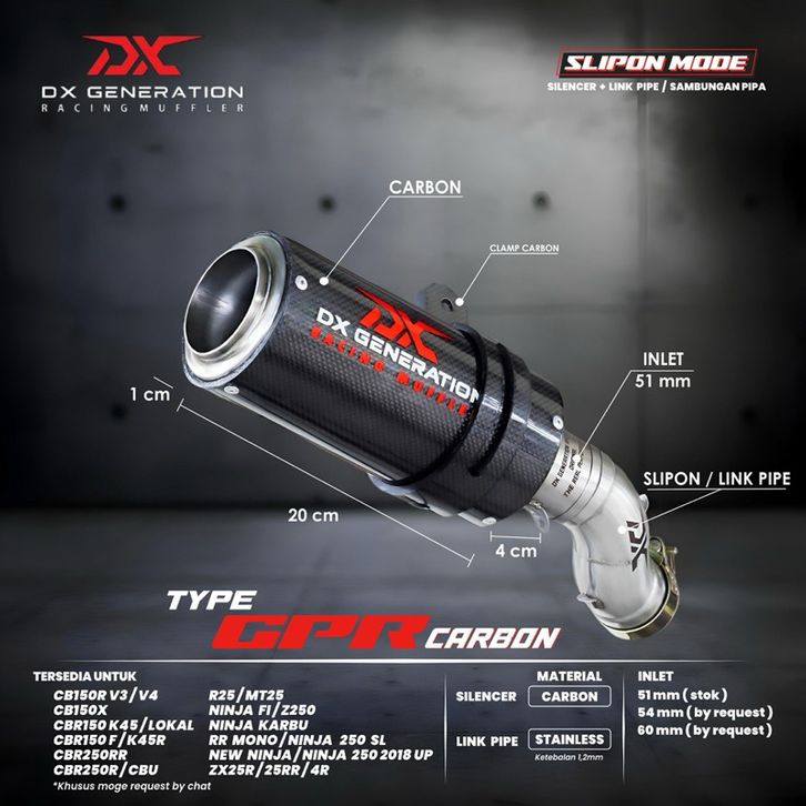 Knalpot GPR Carbon Fullsystem CBR 250 RR Ninja 250 All New Ninja R25 MT25 CBR 150 R15 PCX ADV AeroX