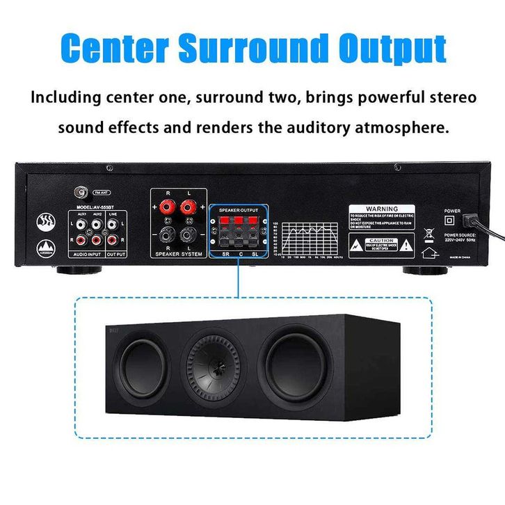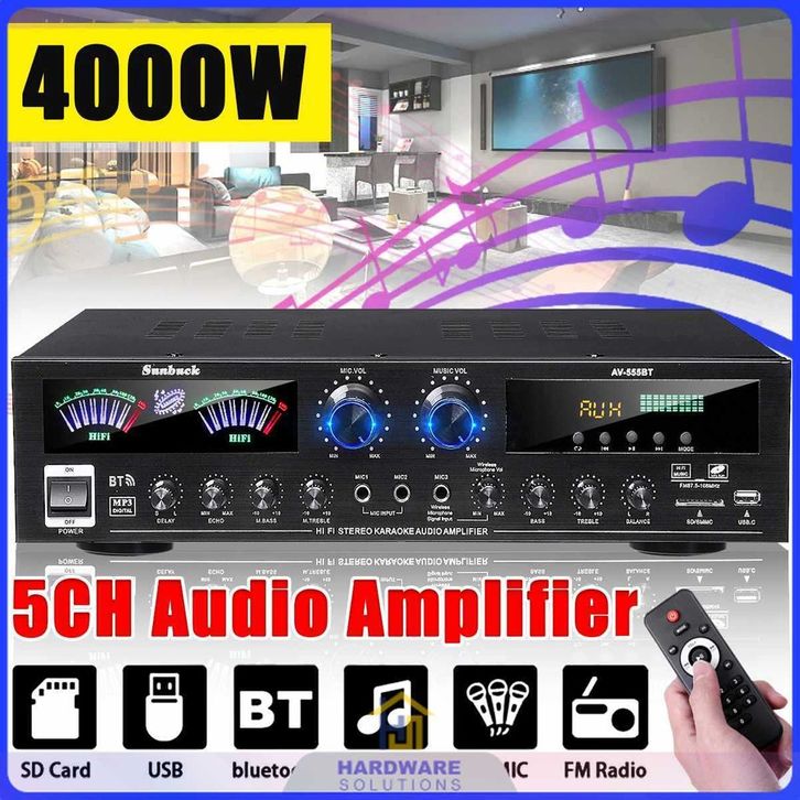 Sunbuck Audio Amplifier Bluetooth 5.0 Microphone HiFi USB MP3 Player - AV-555BT