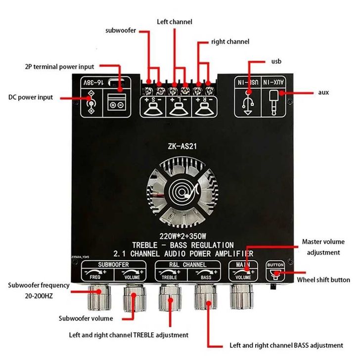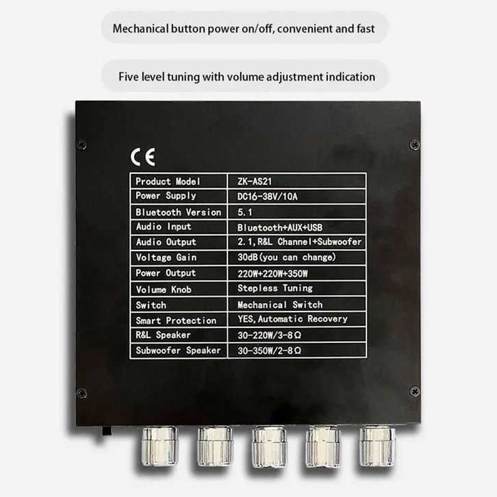 A H - TKXEC Amplifier Board Audio Bluetooth USB 2.1 Channel DIY - ZK-AS21