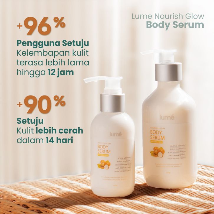 LUME NOURISH GLOW BODY SERUM LOTION MOISTURIZING BRIGHTENING WHITENING PENCERAH SHEA BUTTER LUMECOLORS