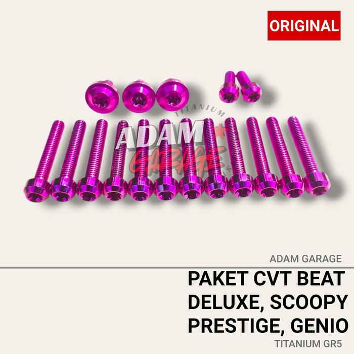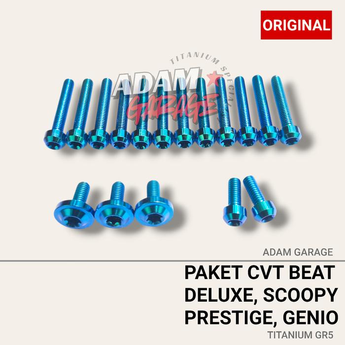 BAUT TITANIUM GR5 PAKETAN CVT HONDA BEAT DELUXE SCOOPY PRESTIGE GENIO 17PCS GRADE 5 ADAM GARAGE