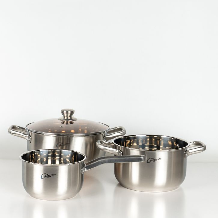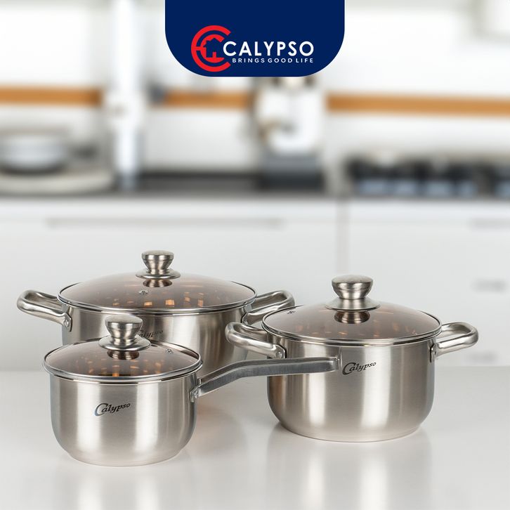 Calypso Panci Set 3pcs MultiFungsi Stainless Steel Tutup Kaca Gagang Stainless Steel