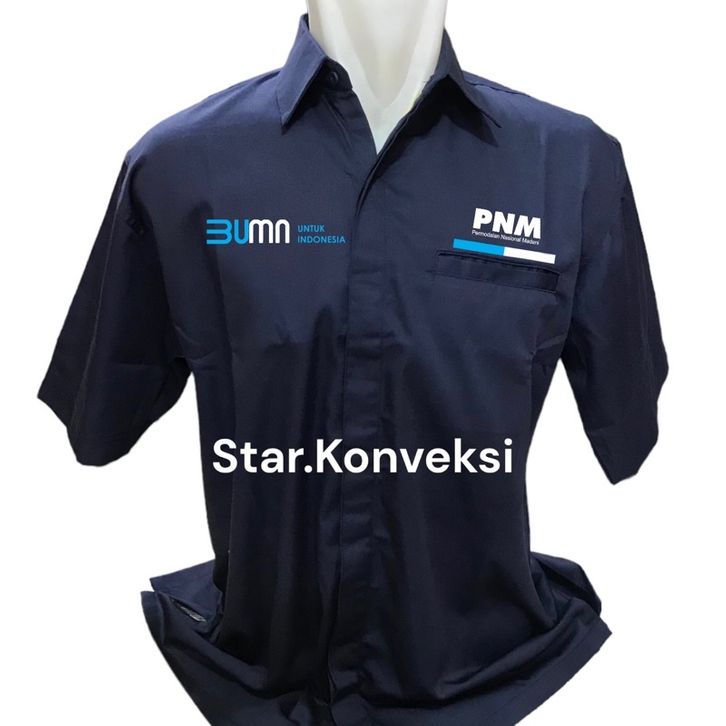 Seragam Dinas Kerja Kemeja PDH Baju BUMN Untuk Indonesia BUMN PNM Permodalan Nasional Madani Warna Navy Biru Dongker Put