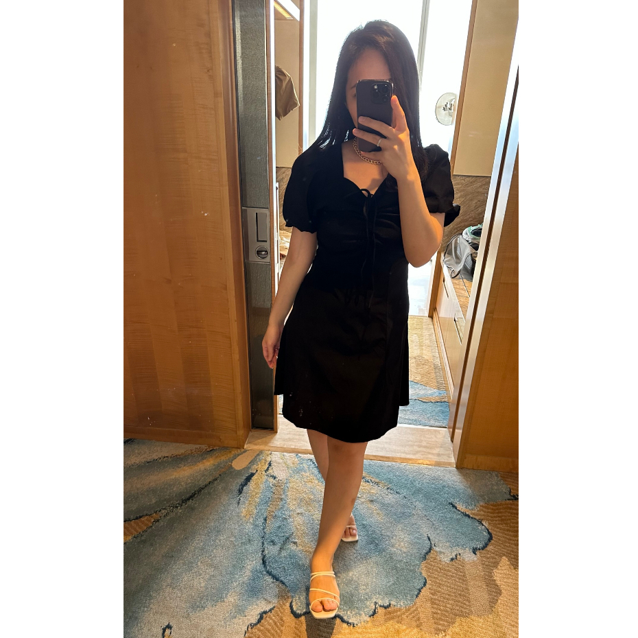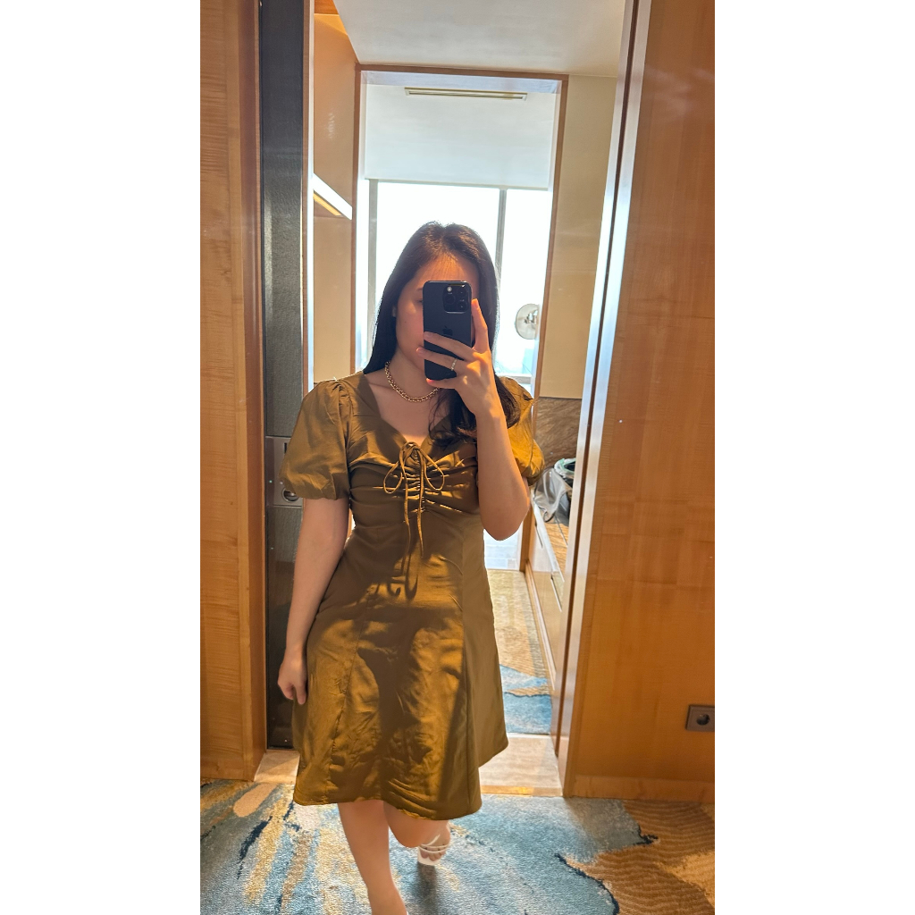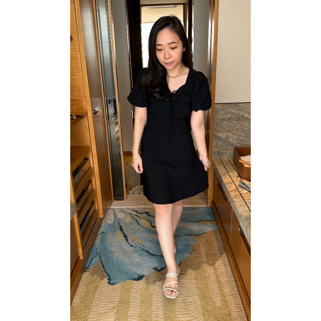 SHECIA - NAYA DRESS TERUSAN WANITA SERUT LENGAN BALON