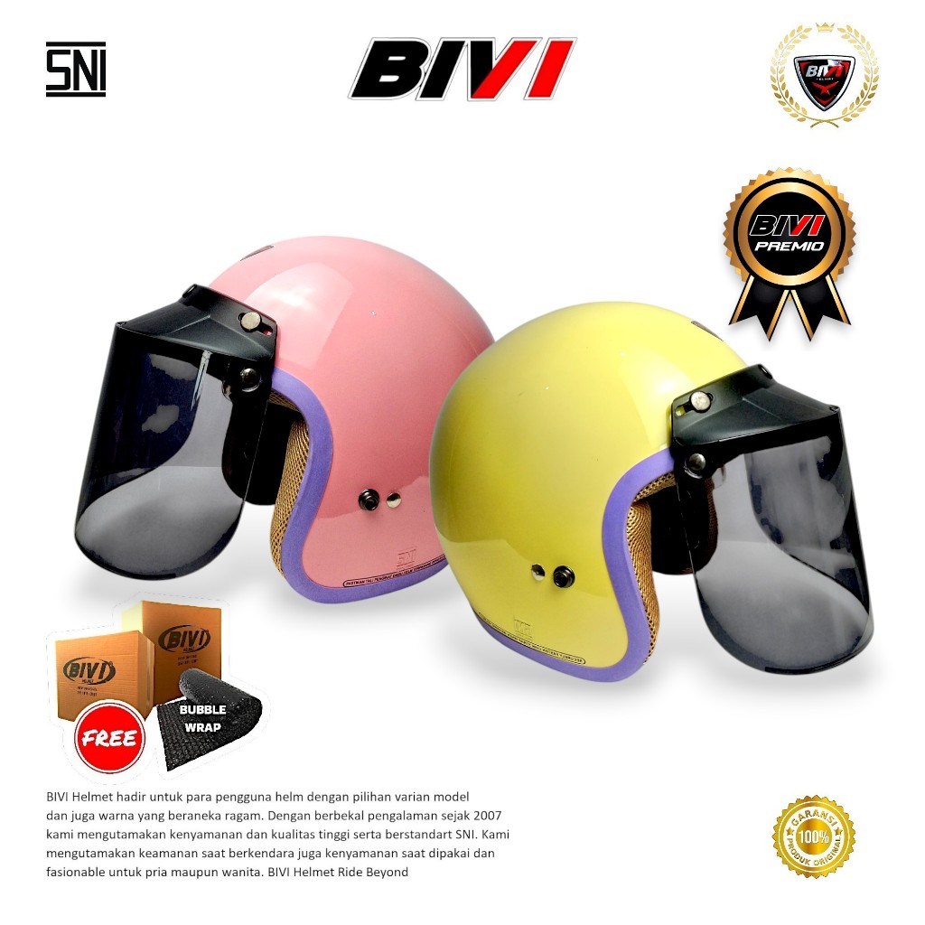 HELM BIVI PREMIO BOGO LIST UNGU POLOS HIJAB WANITA RETRO HALF FACE + KACA SNI