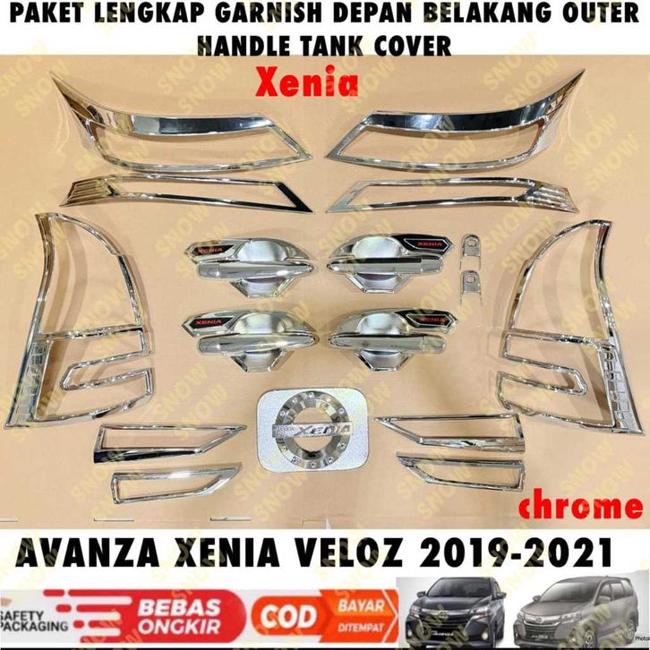 garnish mobil Paket Garnish Depan Belakang Outer Handle Tank Cover Avanza Xenia Veloz 2019 2020 2021 Chrome Hitam