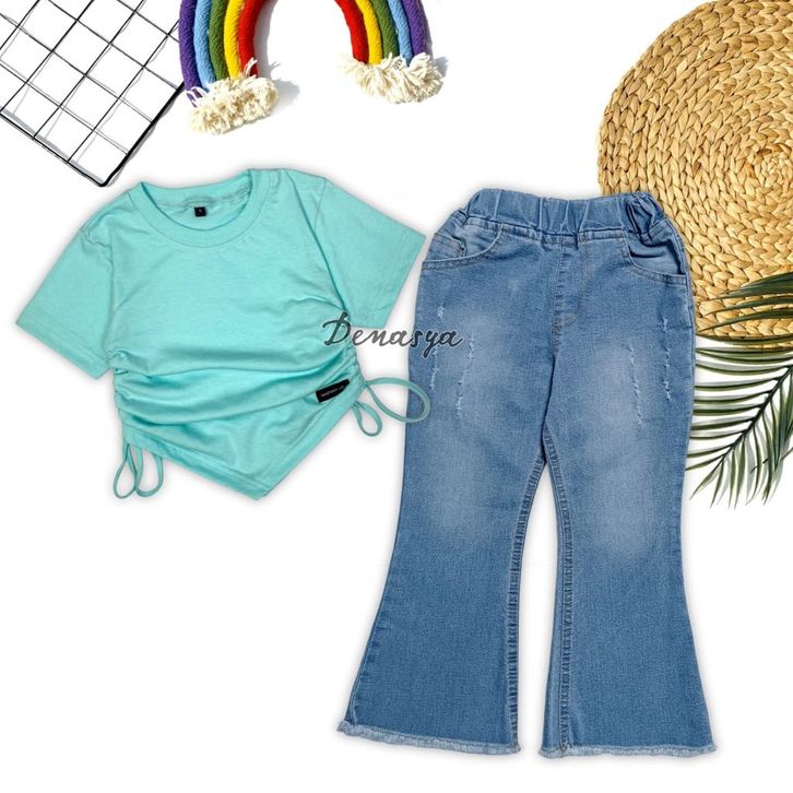 SETELAN JEANS ANAK PEREMPUAN VIRAL / CELANA CUTBRAY LIGHTBLUE ANAK / CROPTOP KAOS SERUT ANAK USIA 1-12 TAHUN KEKINIAN