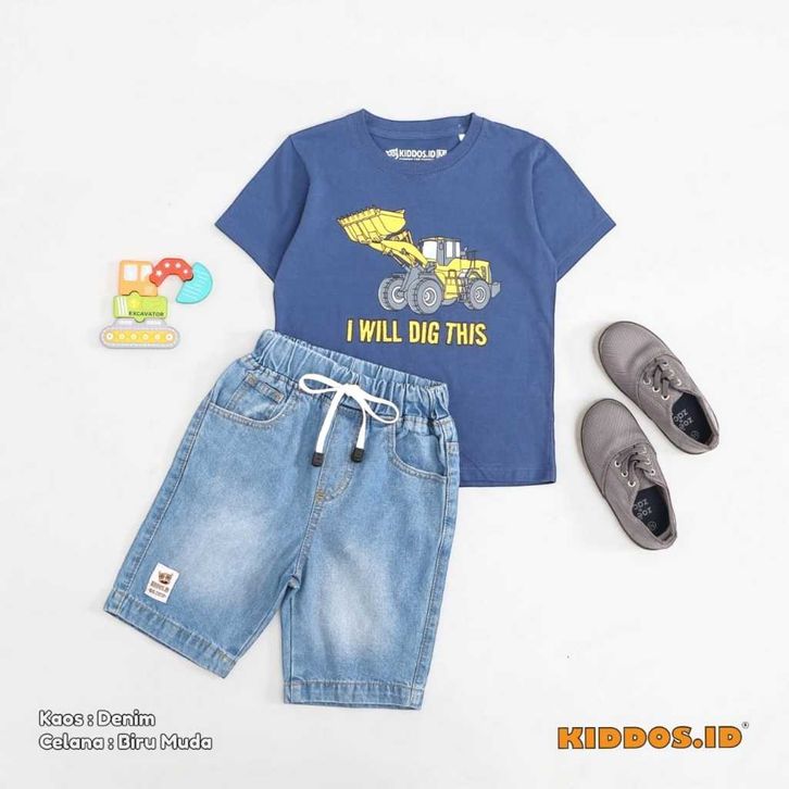 Setelan Kaos Anak / Celana Pendek Jeans Anak Laki Laki The Excavator KIDDOS.ID