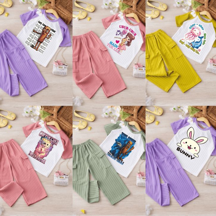 PAKET 3 SETELAN ANOMALI TUNG TUNG SAHUR LABUBU ANAK HORNET KNIT PEREMPUAN USIA 1-8 TAHUN MLXLXXL