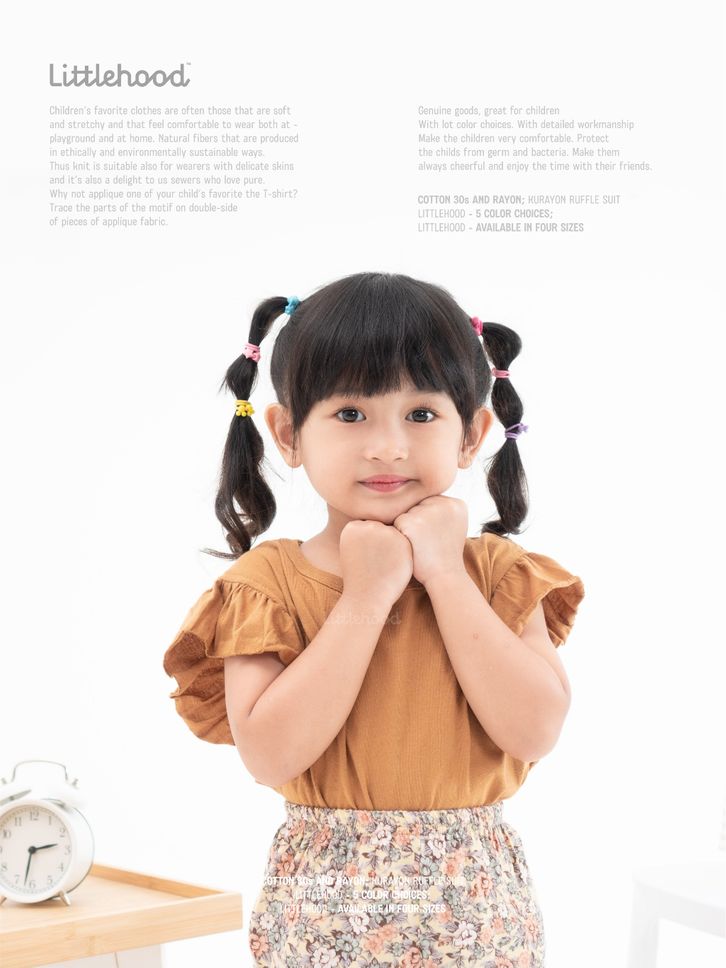 Setelan Anak Perempuan 1-8thn Cotton30s Setelan Celana Rayon Kaos Anak Ruffle Katun Lengan Kupu-kupu