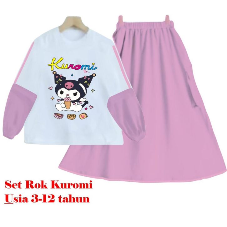 SETELAN ROK KUROMI ANAK PEREMPUAN USIA 3 - 12 TAHUN BAHAN CRINCLE AIR FLOW TERBARU / FASHION VIRAL