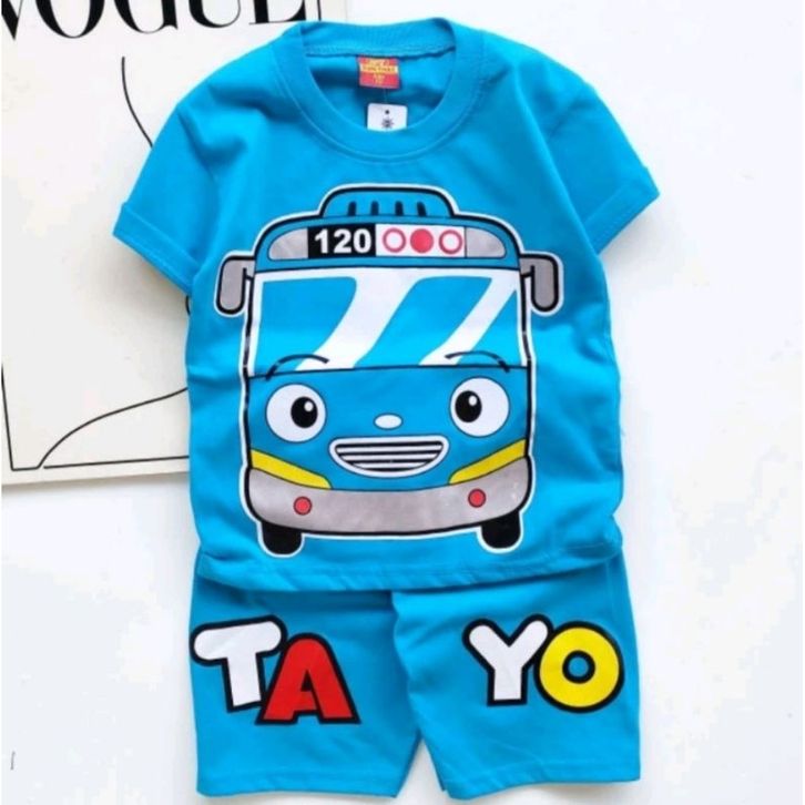 SETELAN ANAK LAKI BUS TAYO WARNA BIRU/SETELAN ANAK TAYO DAN FRIENDS/TOPI ANAK TAYO/TAYO BUS