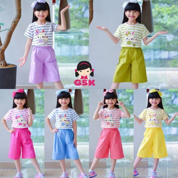 PROMO 6.6 GSK Kids Setelan Celana Kulot Atasan Salur 4-11 Tahun Terbaru / Setelan Anak Perempuan Best Seller