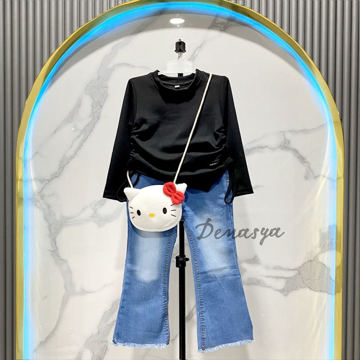 (FREE TAS) Setelan Knit Anak Perempuan / Celana Cutbray Jeans Anak / Atasan Knit Serut Import Terbaru 1-12 Tahun