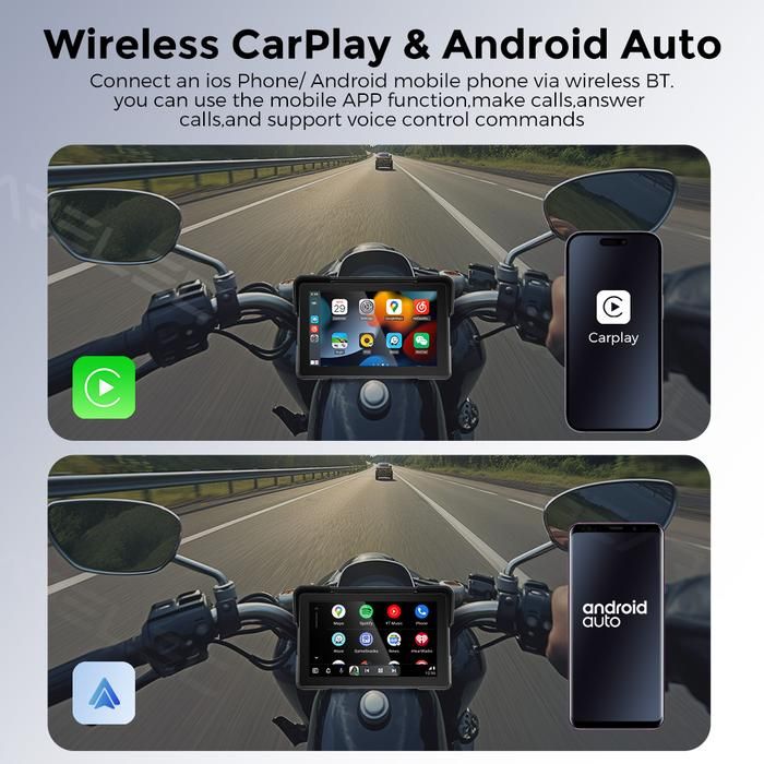 7 inch Android Carplay Motorcycle Tahan Air Smart Screen Dashcam with Camera Motor Dash Cam Wireless Android Auto