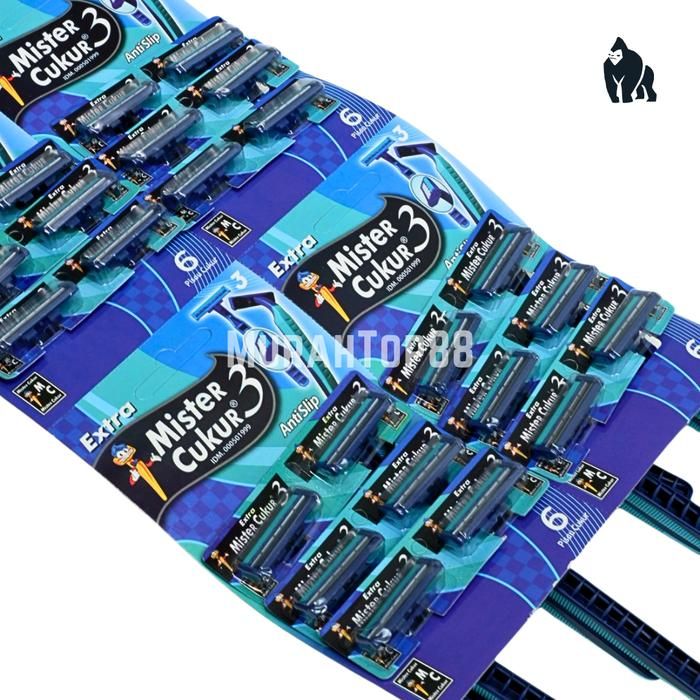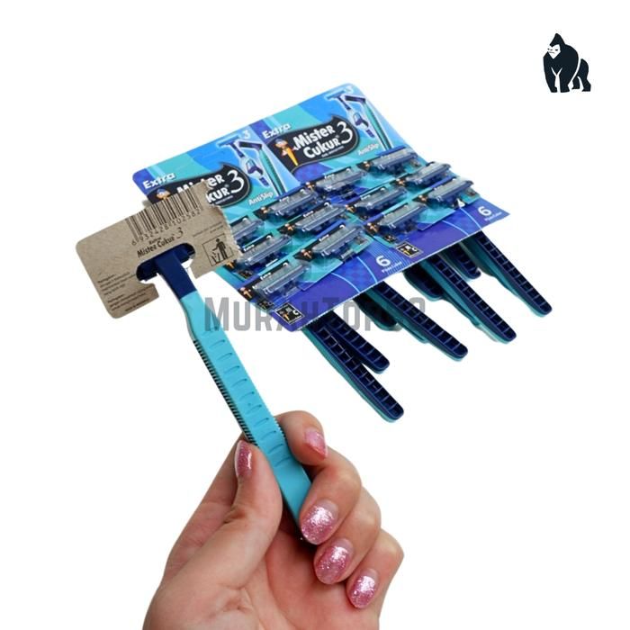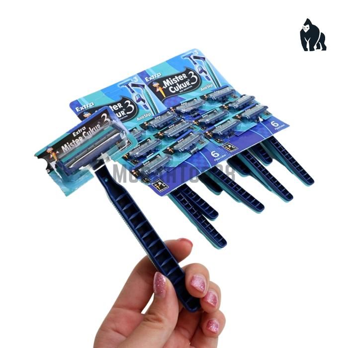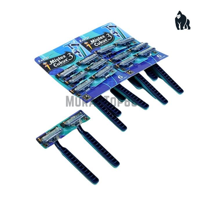 Mister Cukur Mata 3 Biru / Alat Pisau Cukur Kumis Jenggot Disposable