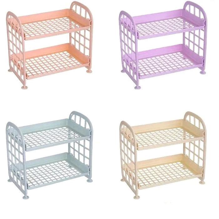 Rak Kosmetik Plastik 2 Tingkat/ Keranjang Make Up Mini Serbaguna Random