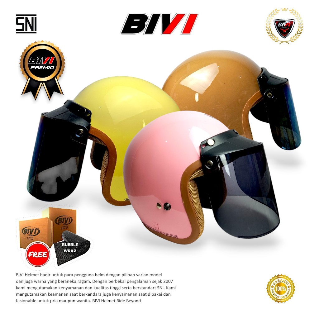 HELM BIVI PREMIO BOGO LIST COKELAT POLOS HIJAB WANITA RETRO HALF FACE + KACA SNI