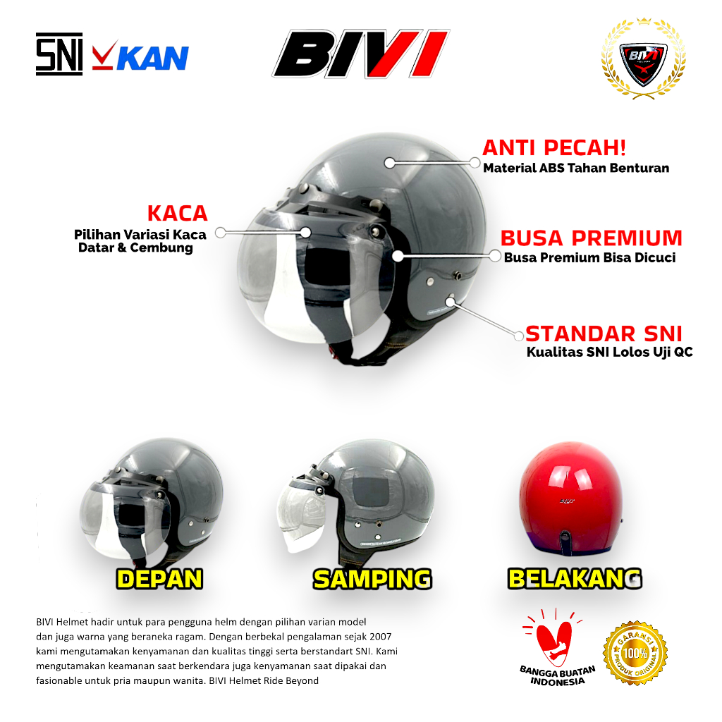 HELM BIVI BOGO MOTIF API LIST CHROME SNI RETRO HALF FACE + KACA DEWASA PRIA WANITA HIJAB