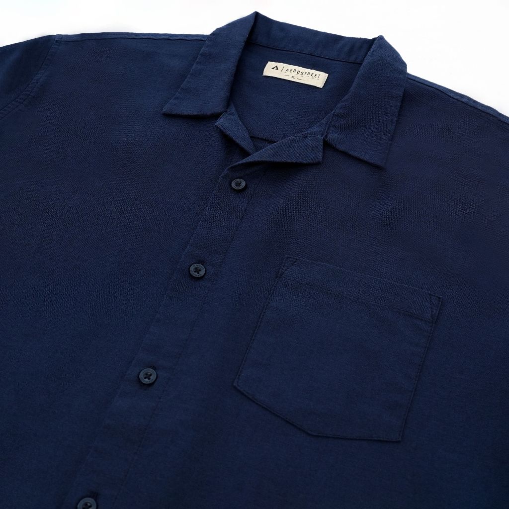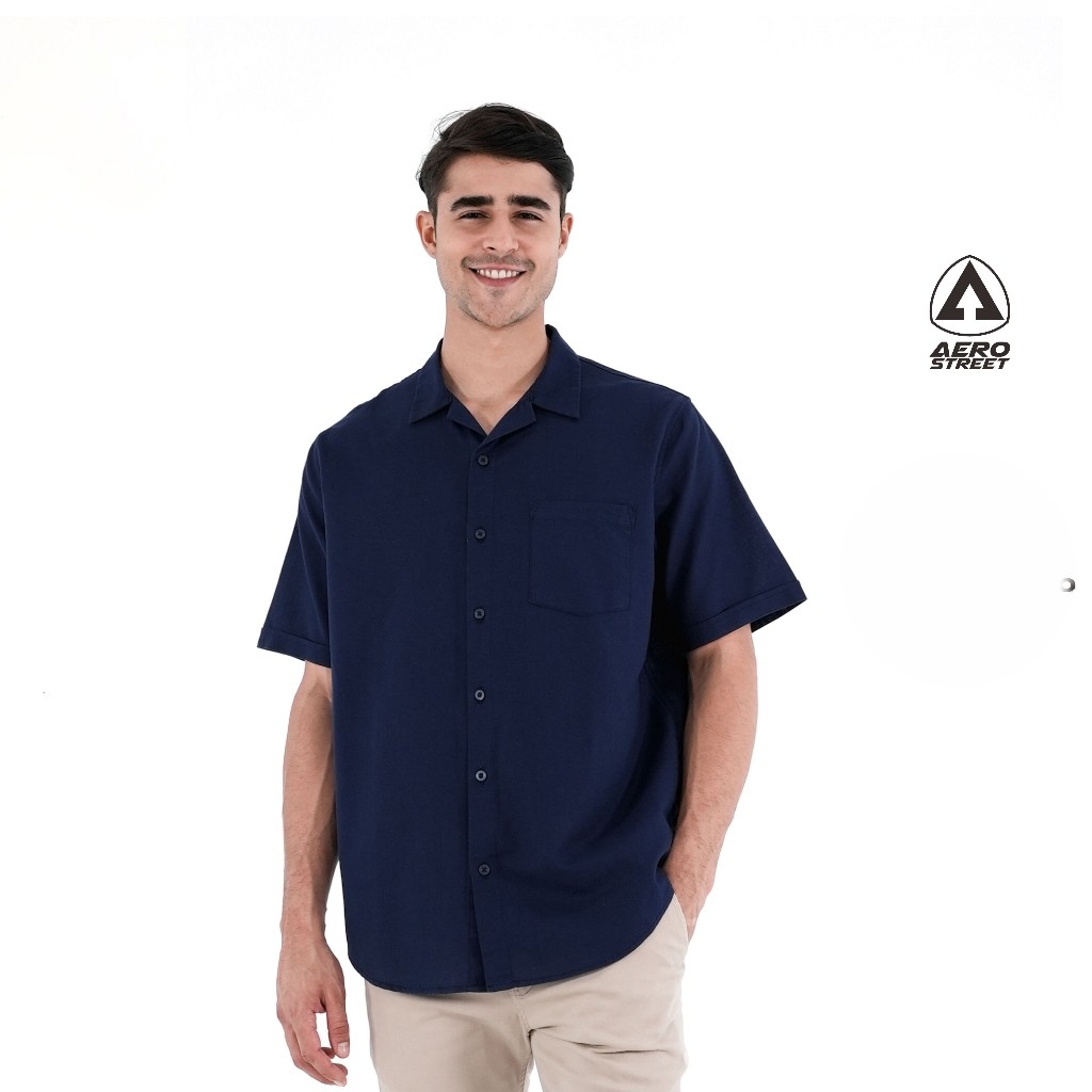 Aerostreet Kemeja Linen Look Savero Navy Man QHAAA Original Best Seller Official Store