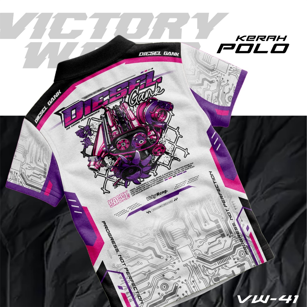 Jersey Kaos Racing Custom Diesel Gank Polo Kerah Kancing V-Neck, Kaos Satuan, Bahan Fullprint VW41