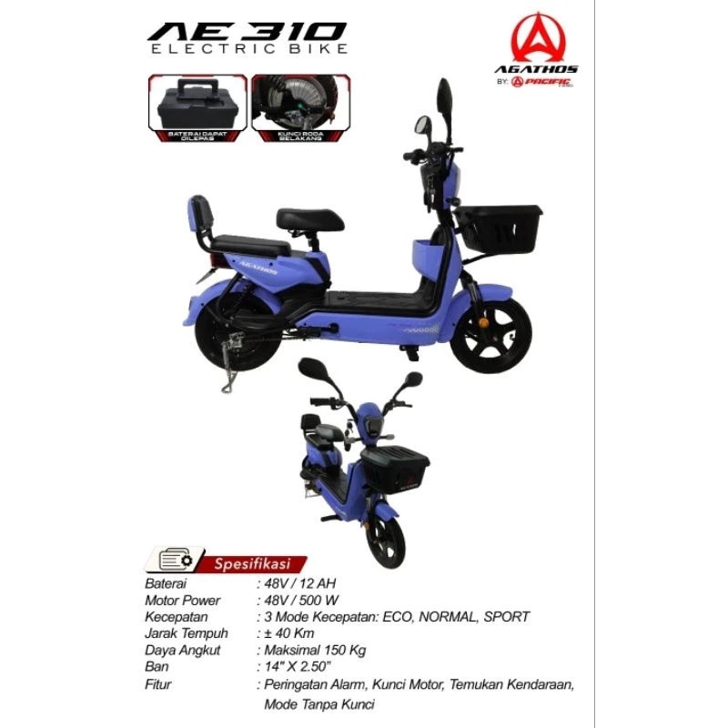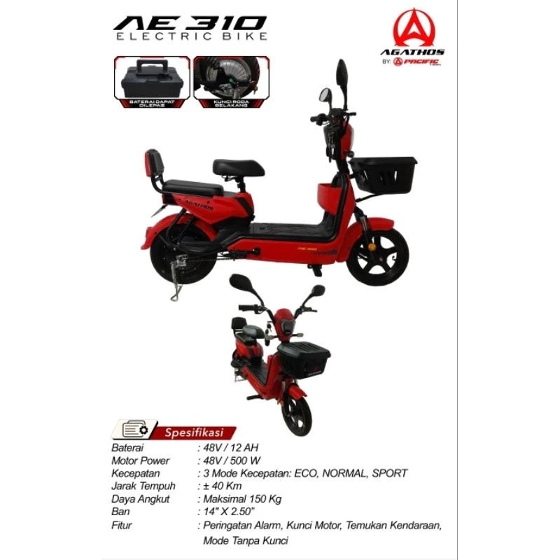 SEPEDA LISTRIK AGATHOS AE310 ELECTRIC BIKE GARANSI RESMI