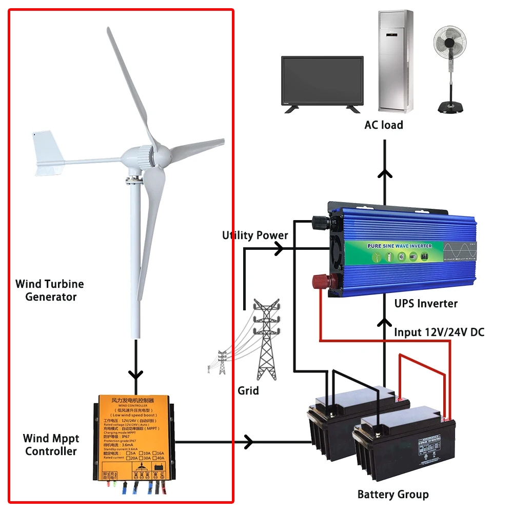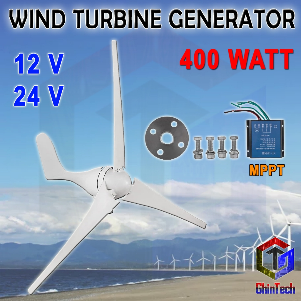 400W wind turbine 12 Volt 24 V generator turbin listrik tenaga angin solar surya panel kincir bayu udara