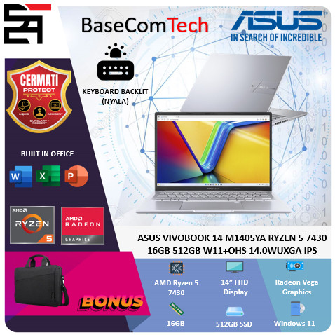 ASUS VIVOBOOK 14 M1405YA | AMD RYZEN 5-7430U | 16GB/512GB | 14.0 INCH WUXGA IPS | RADEON VEGA GRAPHIC | 2 YEARS WARRANTY