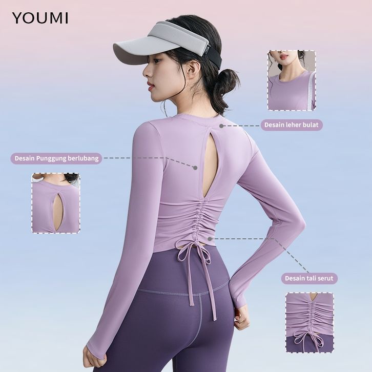 YOUMI Baju Gym Kaos Olahraga Wanita Lengan Panjang Polos Premium Atasan Senam Aerobic Terbaru Kekinian Fit Body T Shirt