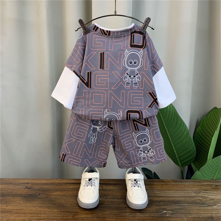 Sky Bubbles Setelan Anak Laki-Laki Pakaian Tampan Anak Laki-Laki Trendi Setelan Dua Potong Lengan Pendek Modis
