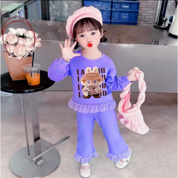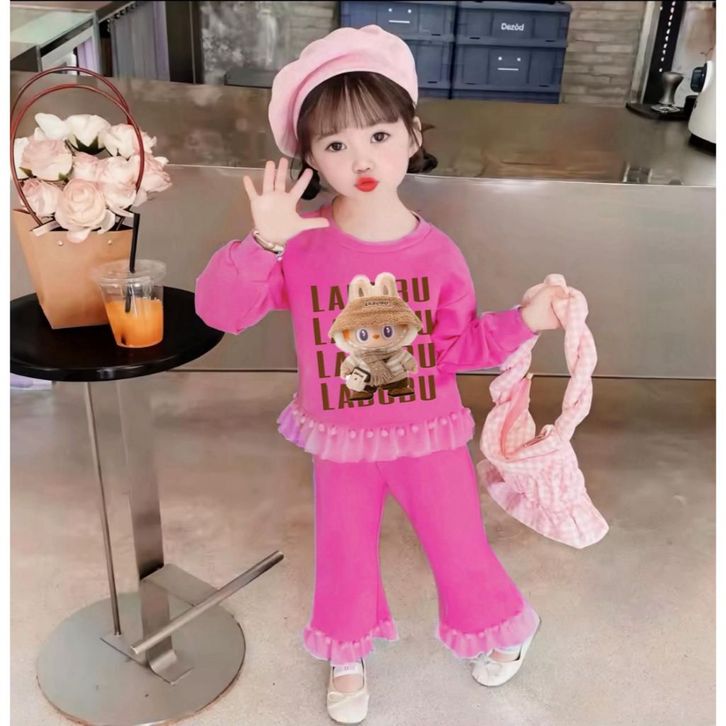 Setelan Labubu Viral Terbaru Anak Perempuan Dengan Variasi Renda Untuk Anak 2-6 Tahun