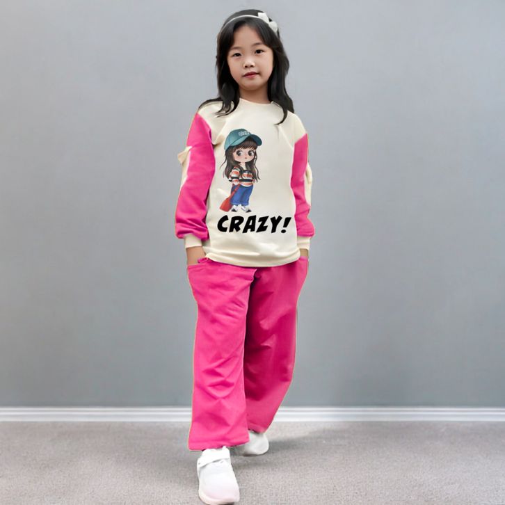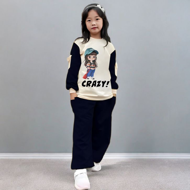 Setelan Baju Anak Perempuan Celana Cargo Kartun Crazy Terbaru Usia 5-12 Tahun