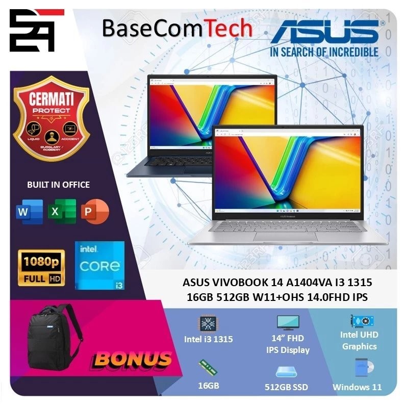 ASUS VIVOBOOK 14 A1404VA I3 1315 RAM 16GB 512GB W11 OHS 14 INCHI FHD IPS
