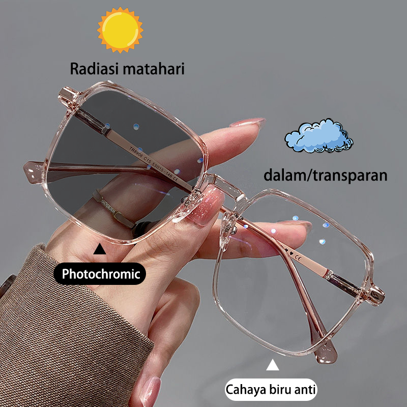 Kacamata Photochromic Anti radiasi Biru Cahaya mata bingkai persegi kacamata komputer wanita Lensa yang bisa diganti