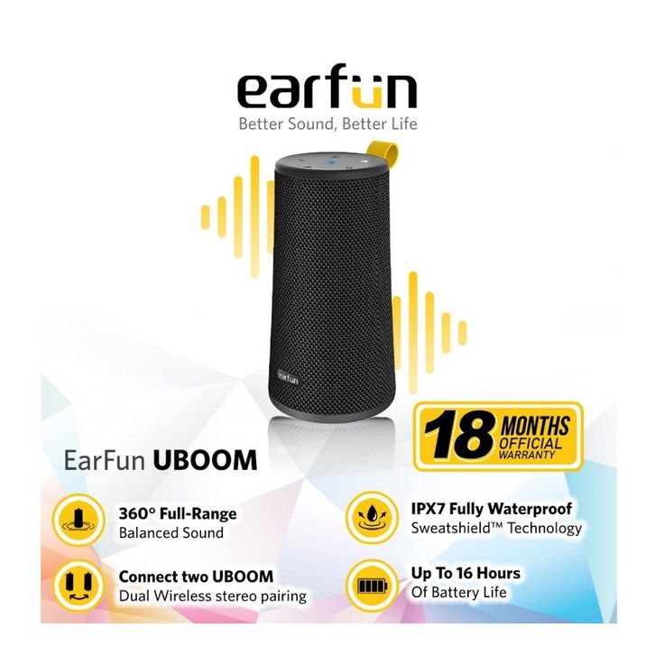 Speaker Bluetooth EarFun UBOOM 360° Audio Spatial & Bass Nendang – Tahan Air IPX7