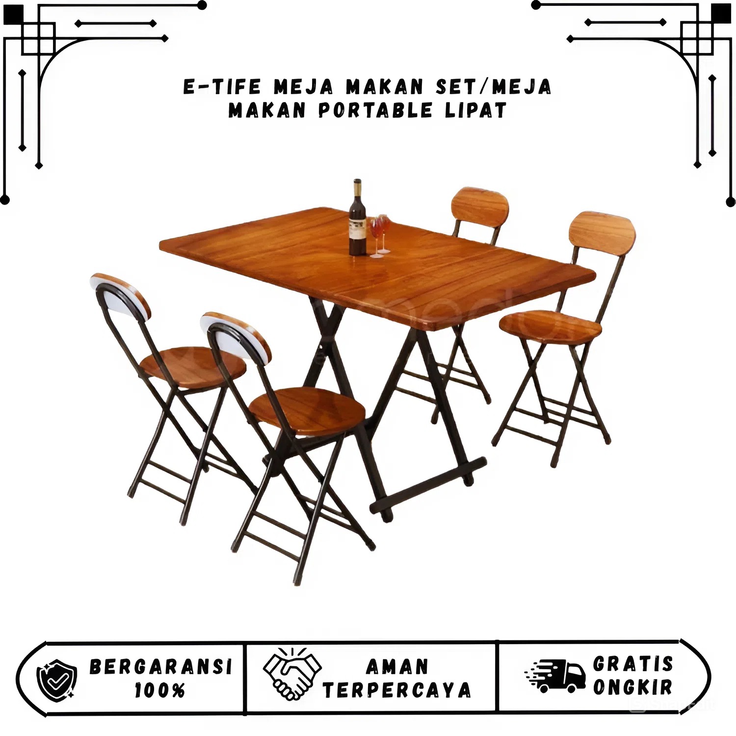 [Mall]E-tife Meja Makan Lipat Set 4 Kursi Minimalis/meja Makan 100x60cm/meja Makan Lipat/Meja Makan Portable Free Ongkir