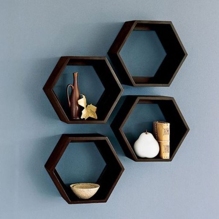 TERLARIS Rak Dinding Hexagonal L Premium - Kayu Jati Belanda Natural 25cm ugodr