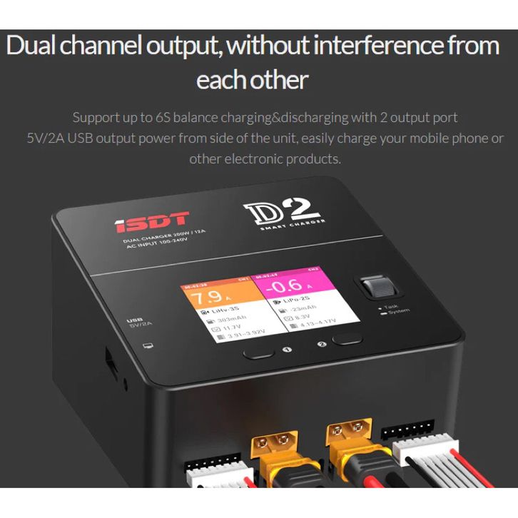 D2MARK2 ISDT D2 Mark 2 LiPo Battery Balance Charger, Dual 200W 12A AC Channel Output Charger
