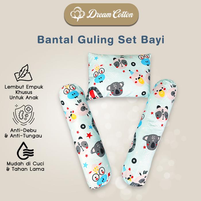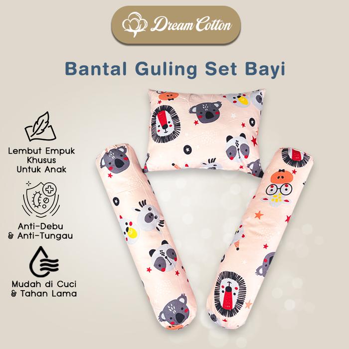 [3in1] Dreamcotton Bantal Guling Set Bayi Newborn Premium Hypoallergenic Halus Adem di kulit, Anti-Tungau Anti-Bakteria