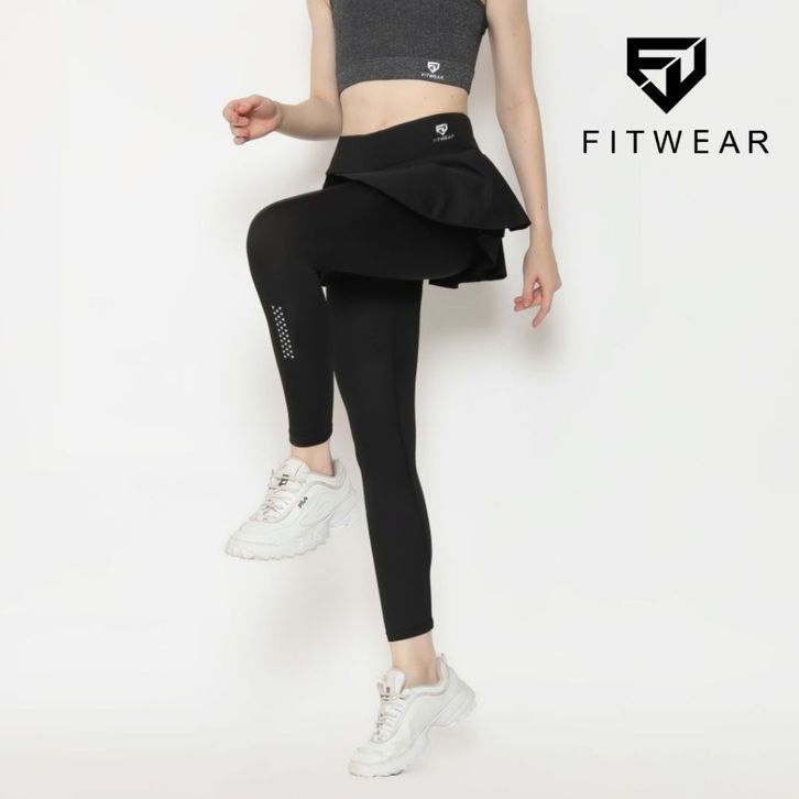 TERLARIS Fitwear - Rok + Legging Olahraga Wanita MARLINE ANKLE DOTS - BLACK - M - 3XL ecasb