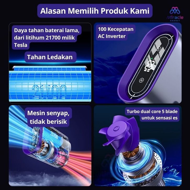 MIRACLE Kipas Air Cooler Turbo Fan 100 Level – Kipas Angin Pinggang + Senter + Powerbank | Cocok untuk Camping, Ojek, &